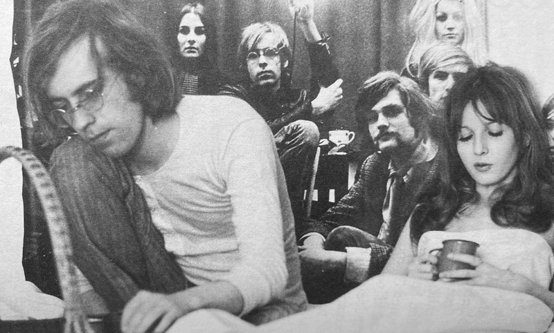 Nun also mit Anatahan, Anatahan ein erster Fünfzigminüter. Eine Spiegelung des eigenen Alltags in aufgeräumten, grobkörnig schwarzweißen 16 mm-Bildern, nie für die Außenwelt bestimmt. Der schlichte Vorspann listet die Namen aller ‹Beteiligten› ohne ihre Funktionen hintereinander auf, vermengt dabei Filmcrew und eigene Pop-Idole. Das geht dann so: Martin Müller, Bob Dylan, Veith (Fürchtegott) von Fürstenberg, Amon Düül II, Sonja Lindorf, Creedence Clearwater Revival. In der Schwabinger Bude, die wir kaum je verlassen, wird nämlich viel Musik gehört – mit ihr in den Tag hineingelebt. Man hält sich mit Filmstatist:innenjobs über Wasser (auf Produktionen mit Langhaarigen sei man ohnehin abonniert), ruft sich von Zimmer zu Zimmer an, wenn man die Butter braucht, liest demonstrativ die Zeitung von gestern (die Nachrichten sind eh veraltet). Damit es überhaupt etwas zu tun gibt, plant man halbherzig ein Theater namens «Superstück», dessen Text aus einer Collage herausgerissener Seiten der Klassiker besteht, die sowieso im Bücherregal herumstehen. Drei Seiten Ein Sommernachtstraum, eine Seite Zar und Zimmermann, zwei Seiten Turandot, drei Seiten Die Maßnahme, eine Seite Richard III. «Sein oder Nichtsein von Shakespeare. Das muss auch noch rein.» Ein bisschen so funktioniert auch der Film: eine Abfolge disparater Momente, durchdrungen von ikonischen Songs. Am Ende bleibt vom Vorhaben tatsächlich nur Livemusik übrig. Ein Erzähler berichtet uns, bevor der Film zur finalen statischen Halbtotale eines Auftritts der Krautrocker Amon Düül II hinüberschneidet: «Man hat das Theaterspielen aufgegeben. Warum auch noch Theater spielen, wenn man ohnehin schon Theater spielt. Es war auch niemand traurig darüber, man musste nur etwas Neues finden.» Die Performance geht gut zehn Minuten, die letzte davon ist stummes Auseinandergehen. Einfach nur die Band, Publikum, Klänge. Ein Fünftel des Films, keine Schlusspointe. Man ist auf diesen inoffiziellen Beginn des Slow Cinema nicht vorbereitet.